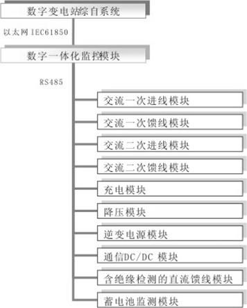 (B)集中功能分散化:直流絕緣檢測分成“母線絕緣檢測”+“饋線絕緣檢測”,“母線絕緣檢測”只需將母線電壓作為裝置電源接入即可,“饋線絕緣檢測”分散到饋線模塊監(jiān)測漏電流,并通過通信上傳數(shù)據(jù)到一體化模塊,進(jìn)行綜合分析;蓄電池巡檢分布化:每層蓄電池配置一臺采集模塊,各采集模塊通過通信總線上傳數(shù)據(jù)分析。